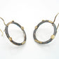 Round oxidized sterling silver, 23 mm diameter, decorated with gold bars, dots and balls. gold hooks.