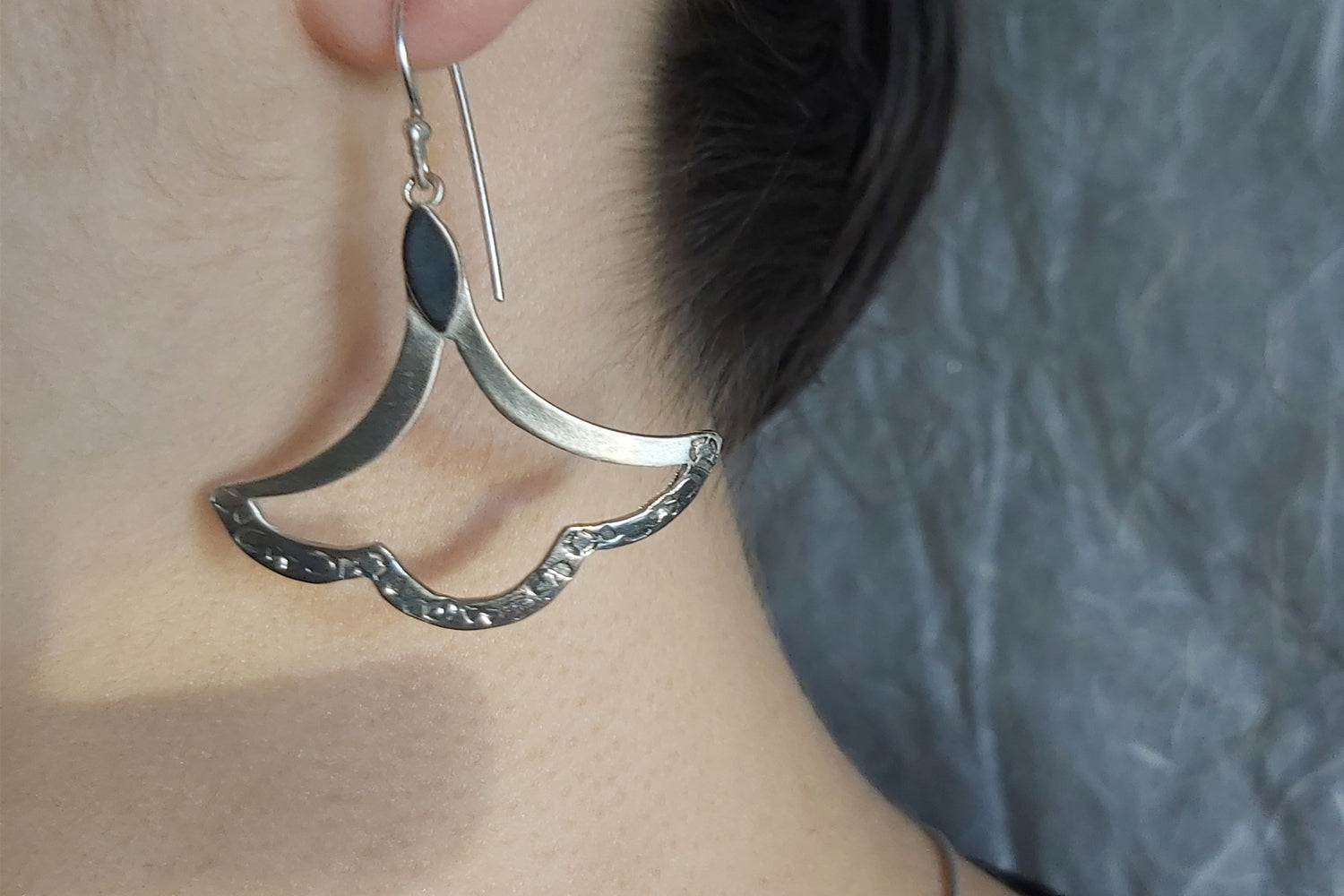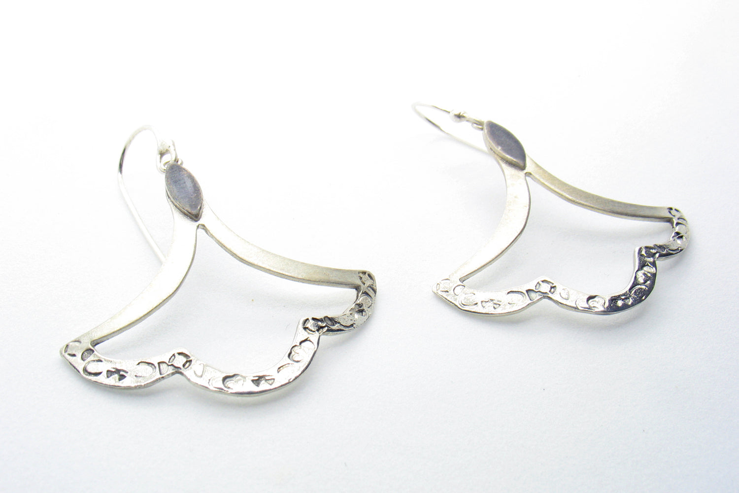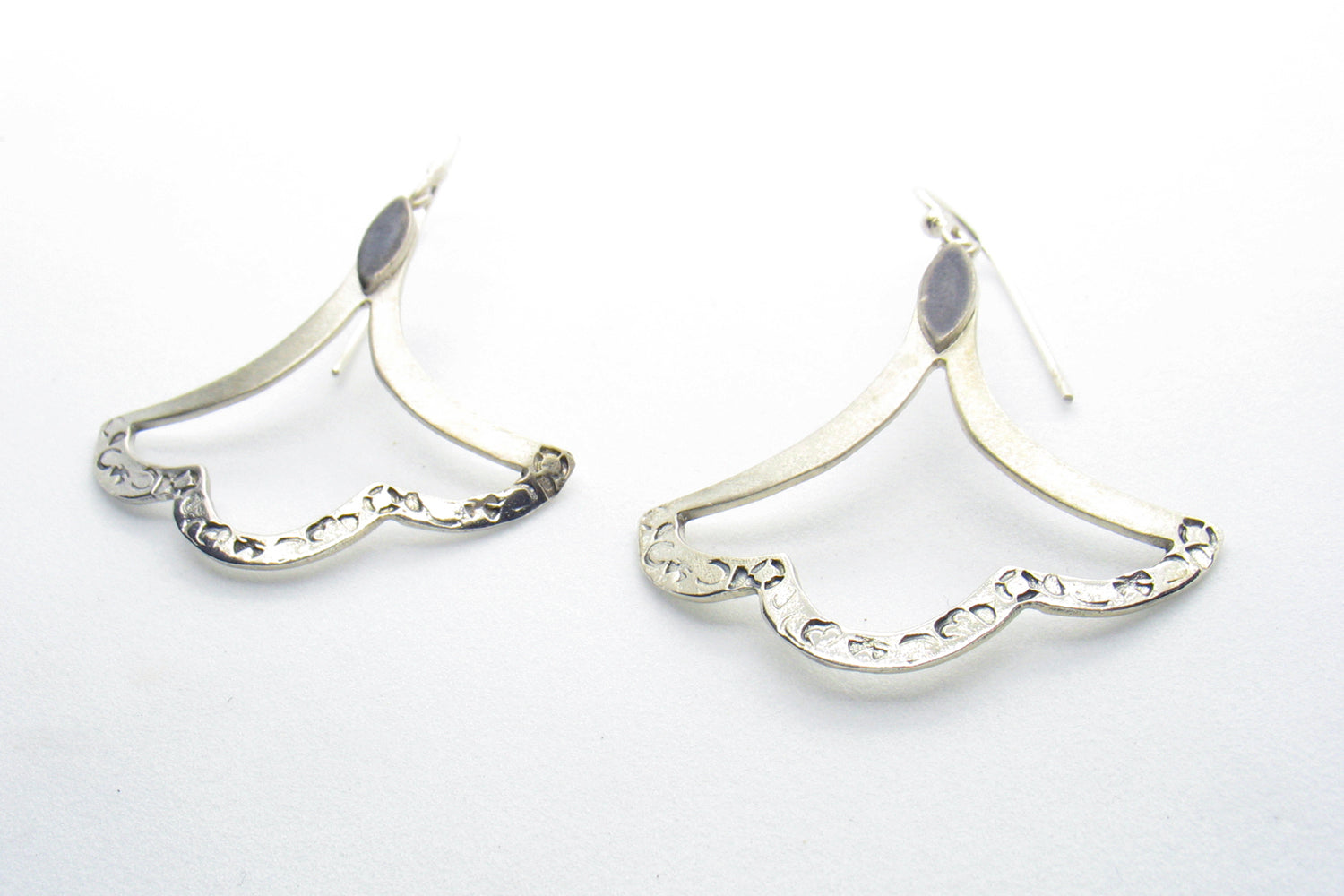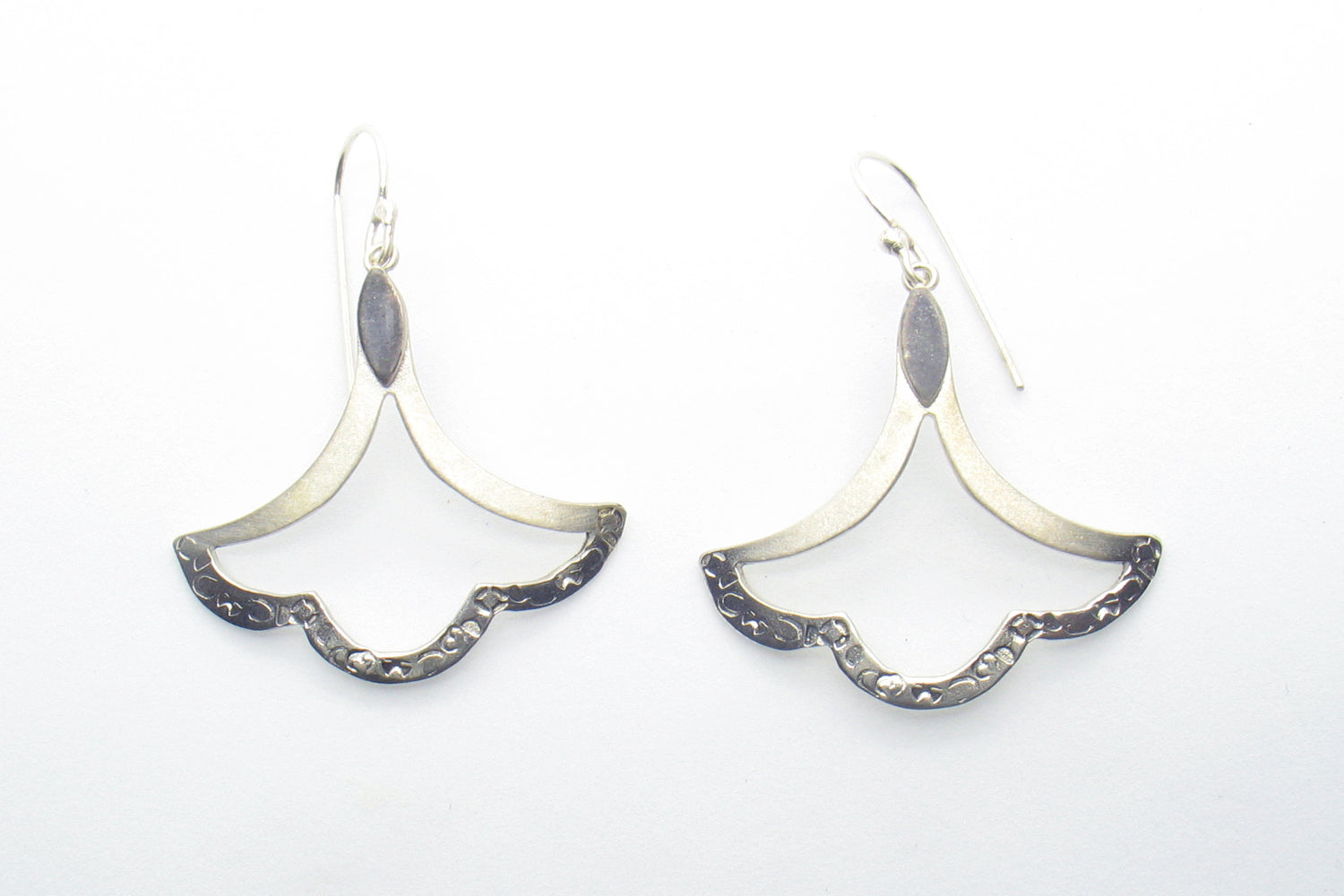 This light , hollow and wavy earrings have a playful balance between a bright finish and a touch of dark oxidization.