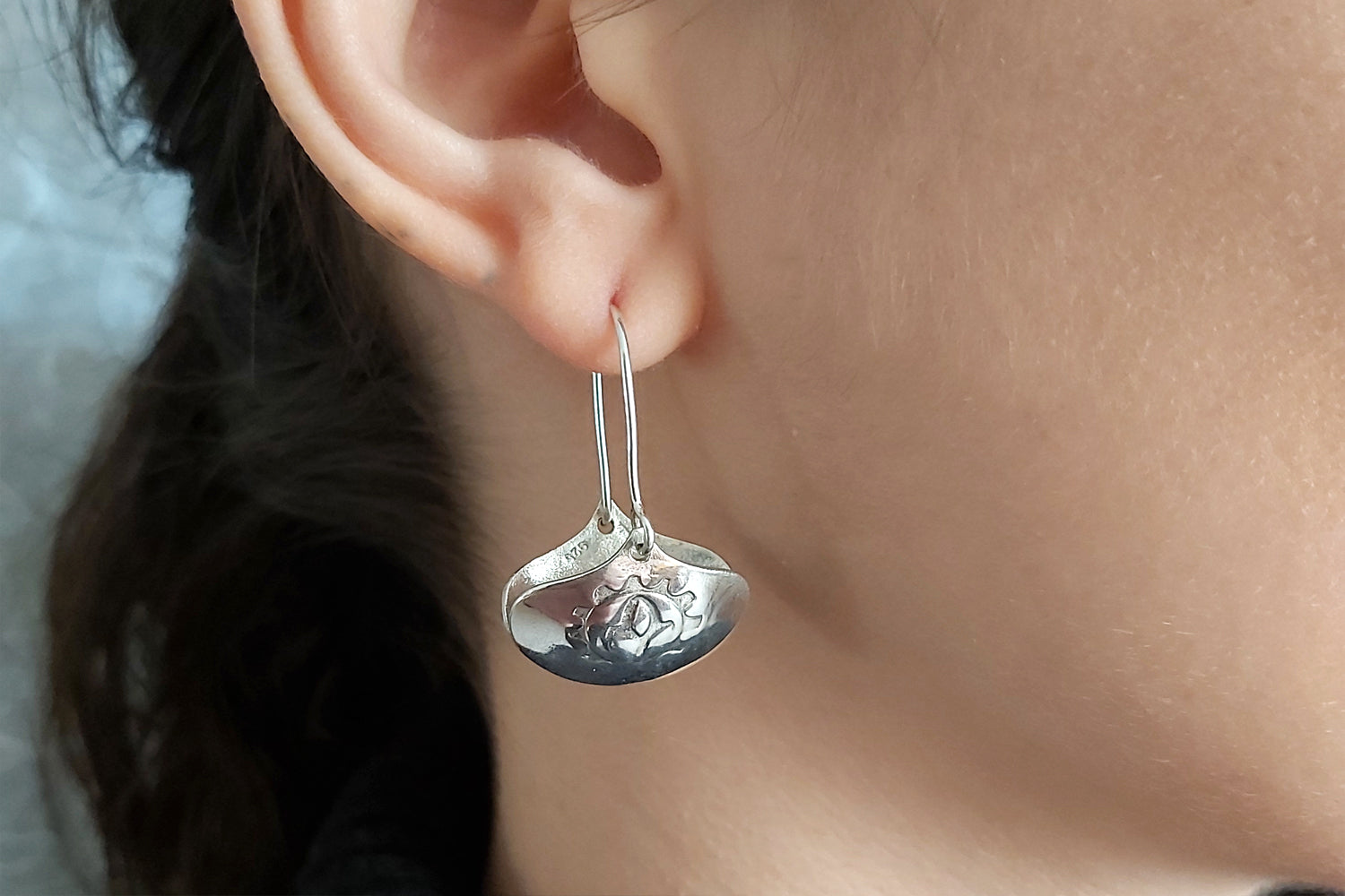 Another sterling silver pair of earrings from our Spanish Hand Held Fan collection. This design has more of a 3D approach, they're incredibly light and fun to wear.