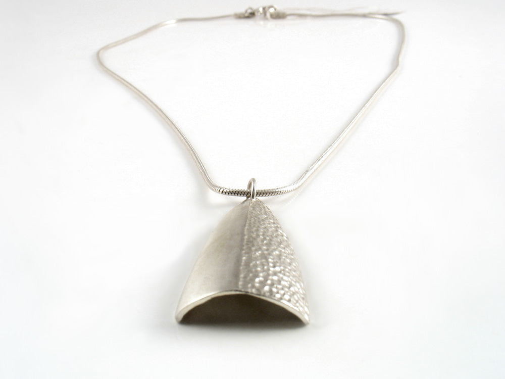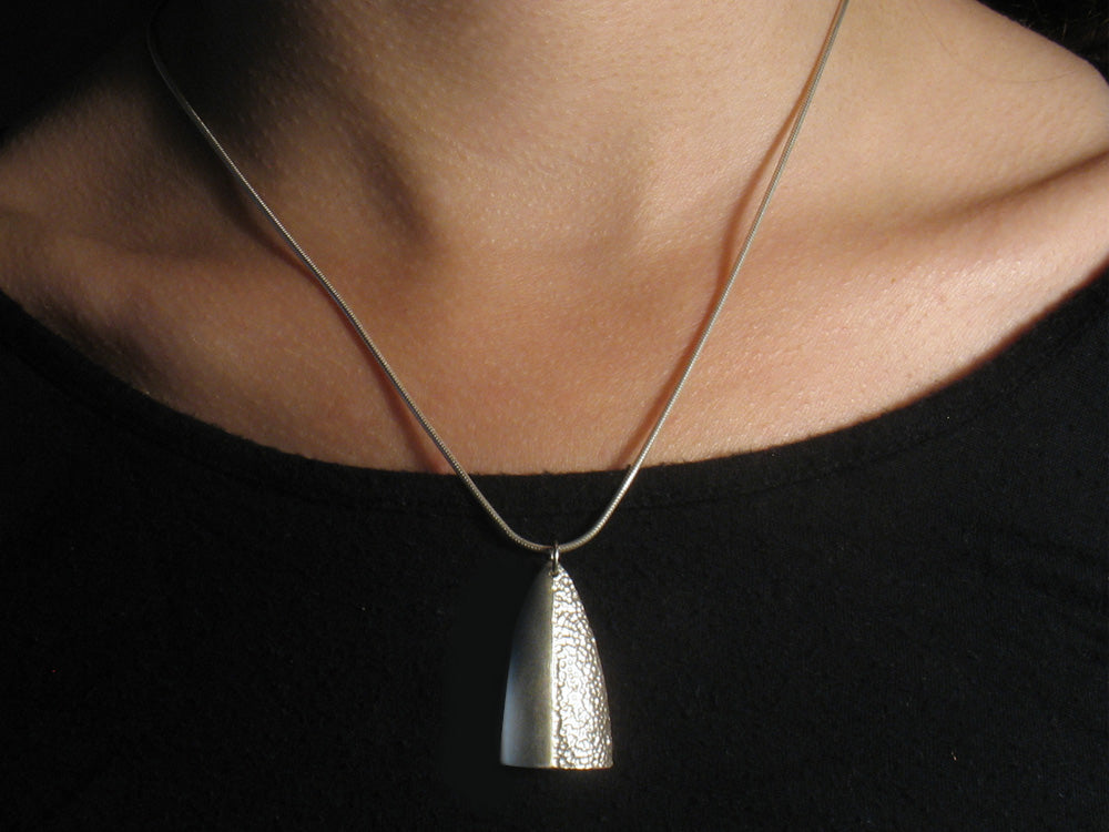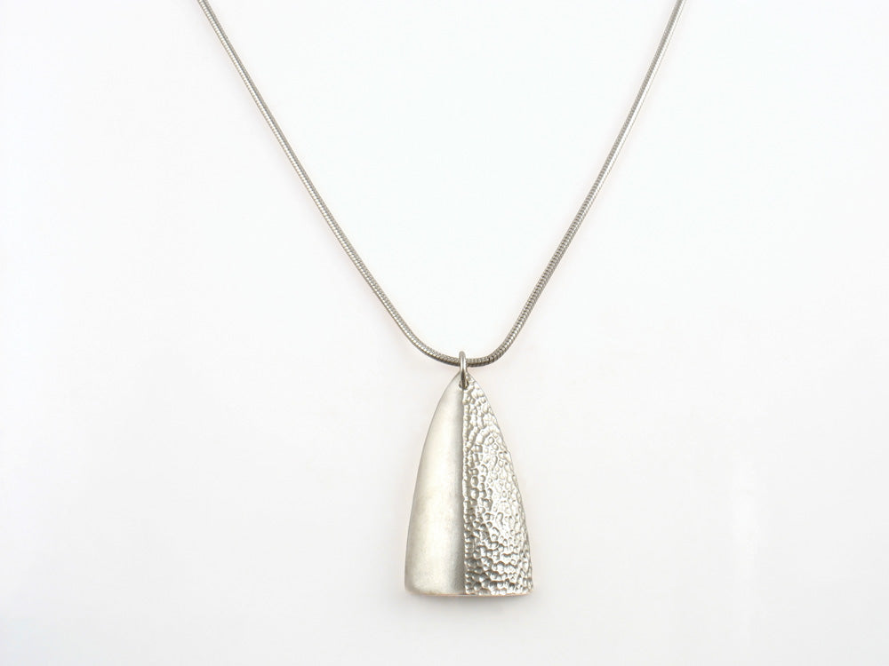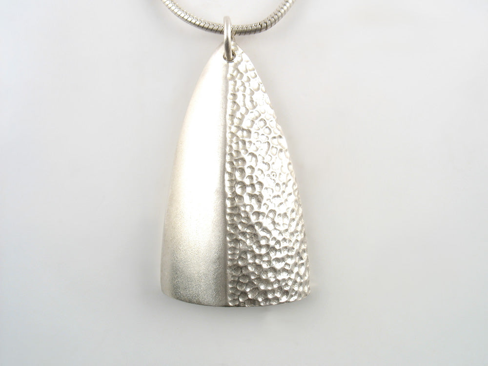 Sterling silver tribal shield pendant, half hammered and half brush finish.