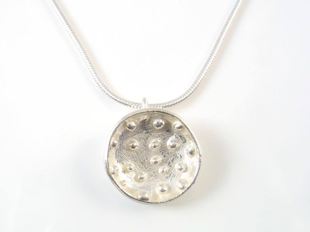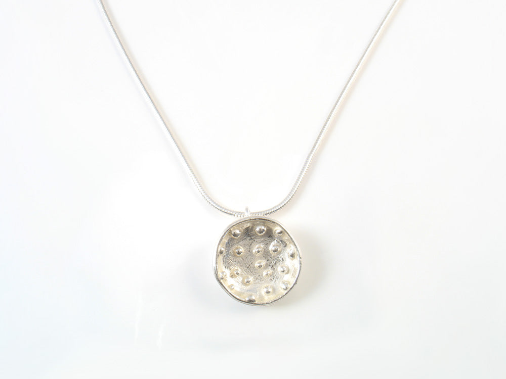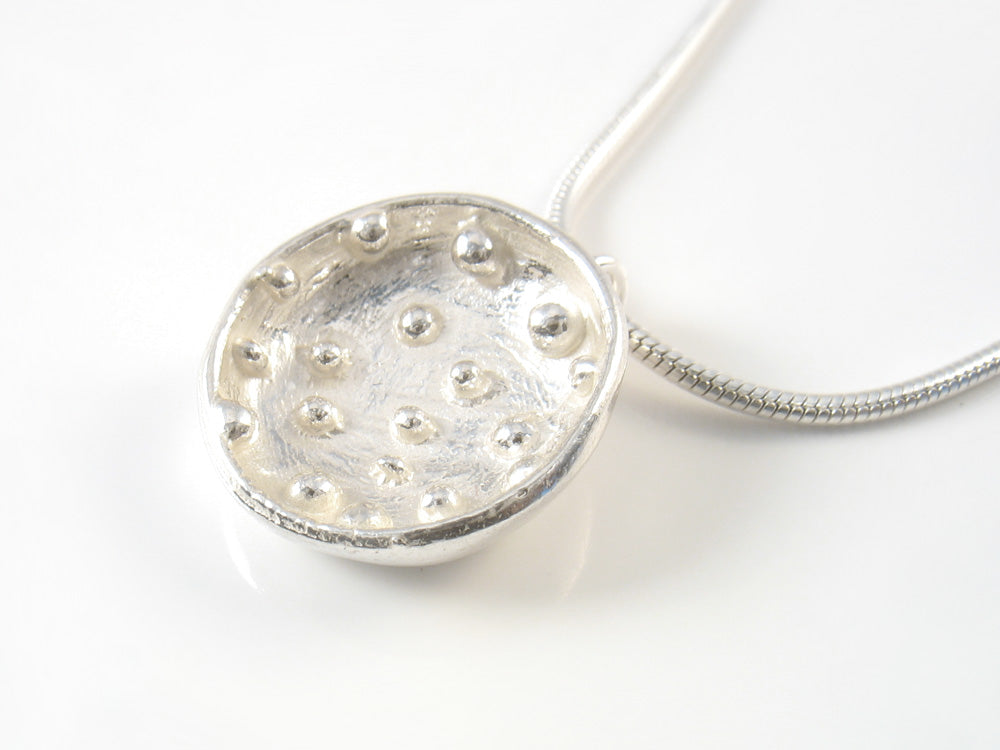 Medium Sterling silver droplet bowl on a 16 inch silver snake chain.