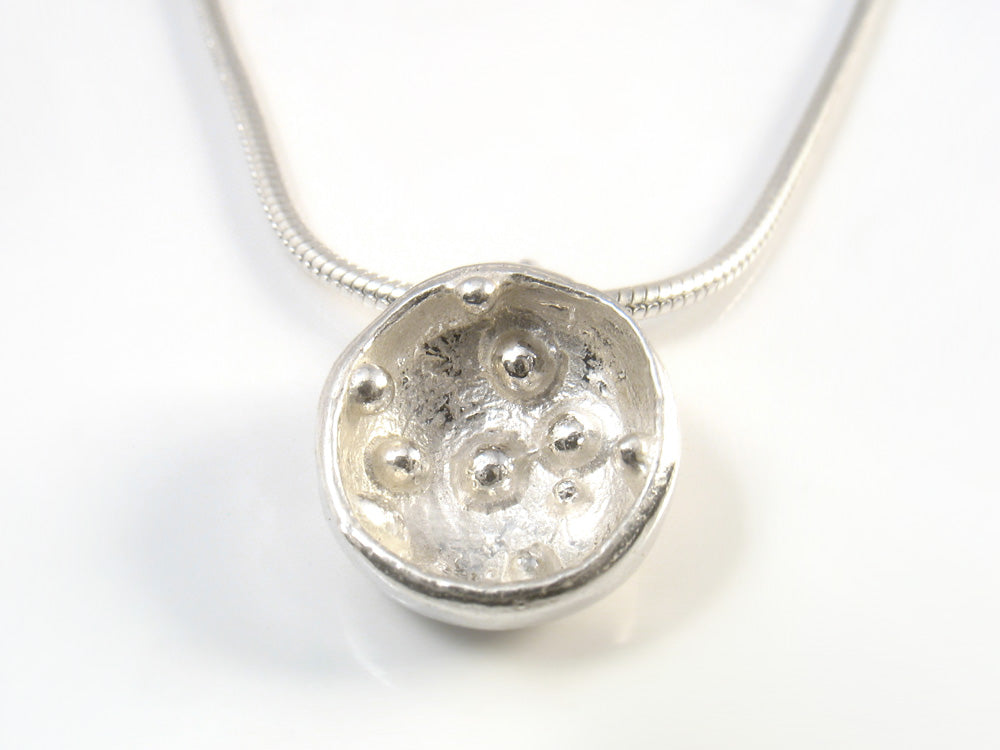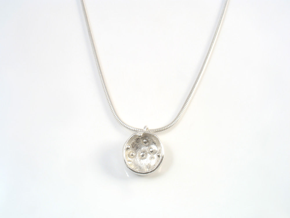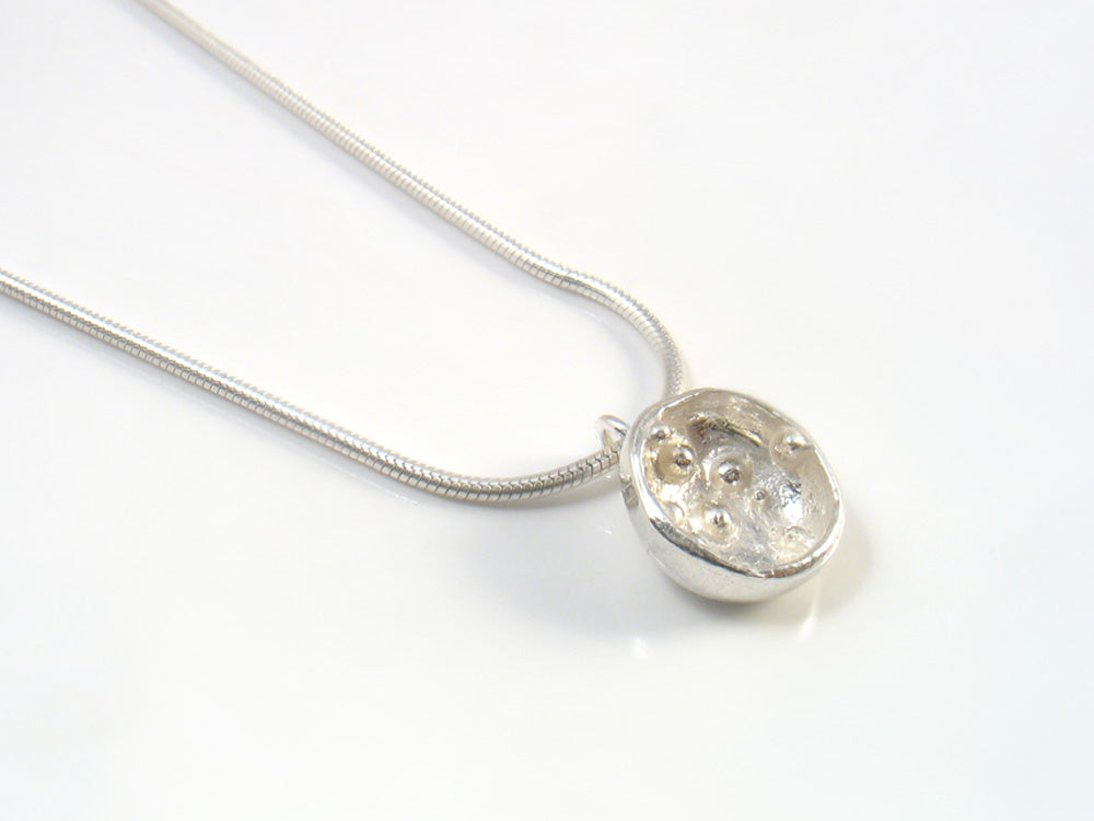 Small Sterling silver droplet bowl on a 16 inch silver snake chain.